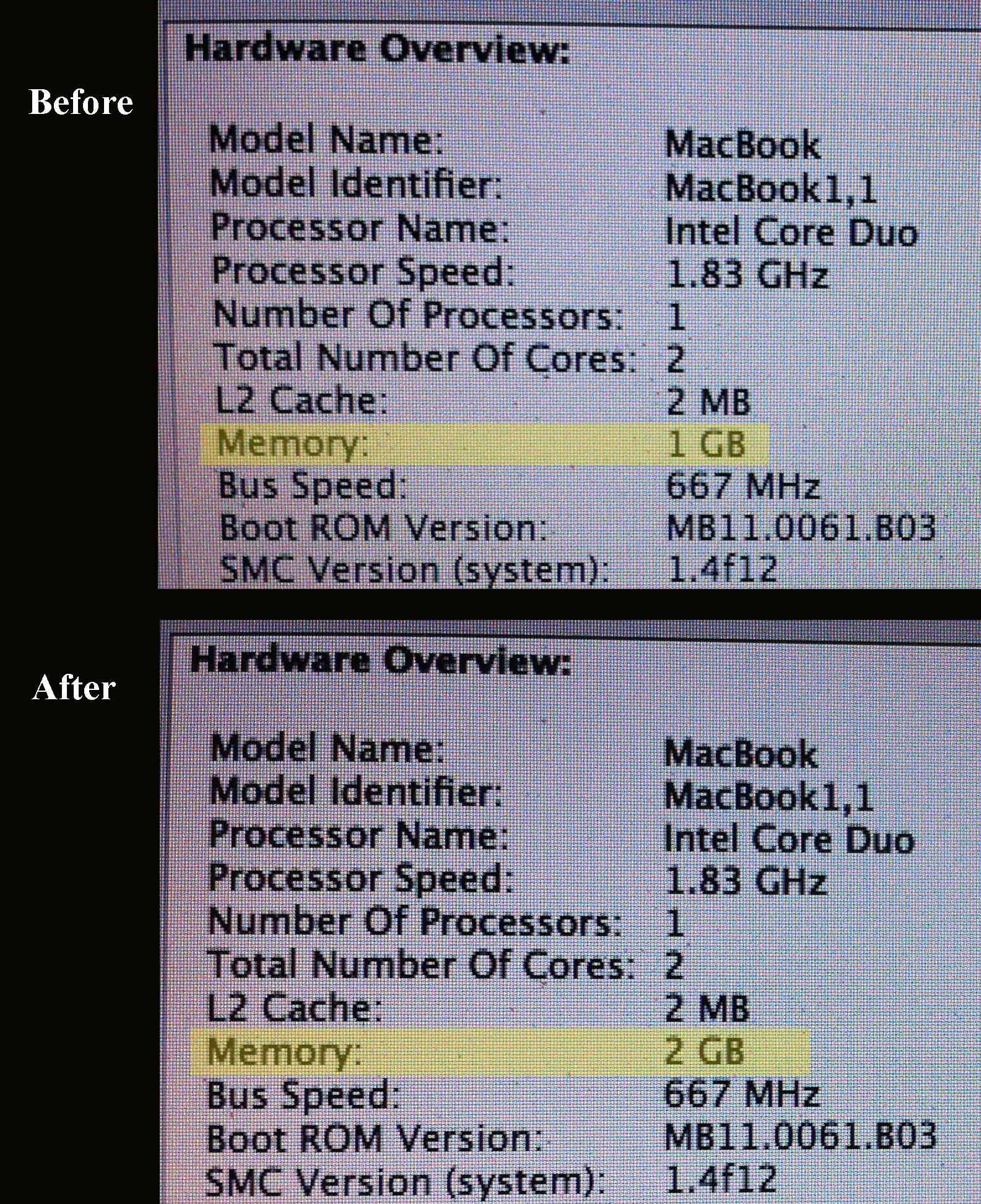 When Mountain Lion came out, I was dismayed to discover that my beloved 2006 laptop is now obsolete; Mountain Lion only works on computers released in mid-2007 and later. Sadness. So I decided to get my poor old MacBook a present to make us both feel better: A whole new gig of memory. (Hey, that’s a lot by 2006 standards. Plus it’s all my old laptop can handle.)